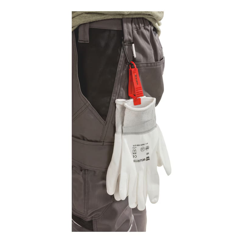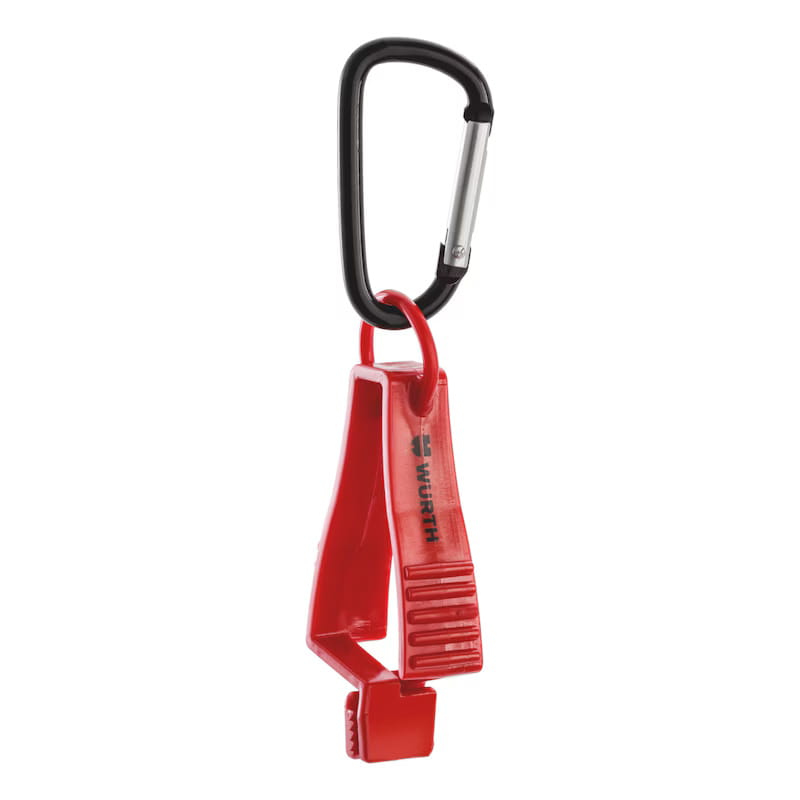 Uchwyt na rękawice z hakiem i zatrzaskiem - uniwersalny klips Würth, kolor czerwony.