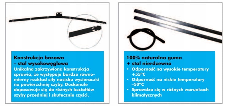 - Wytrzymała konstrukcja - dłuższa żywotność niż klasyczne wycieraczki.