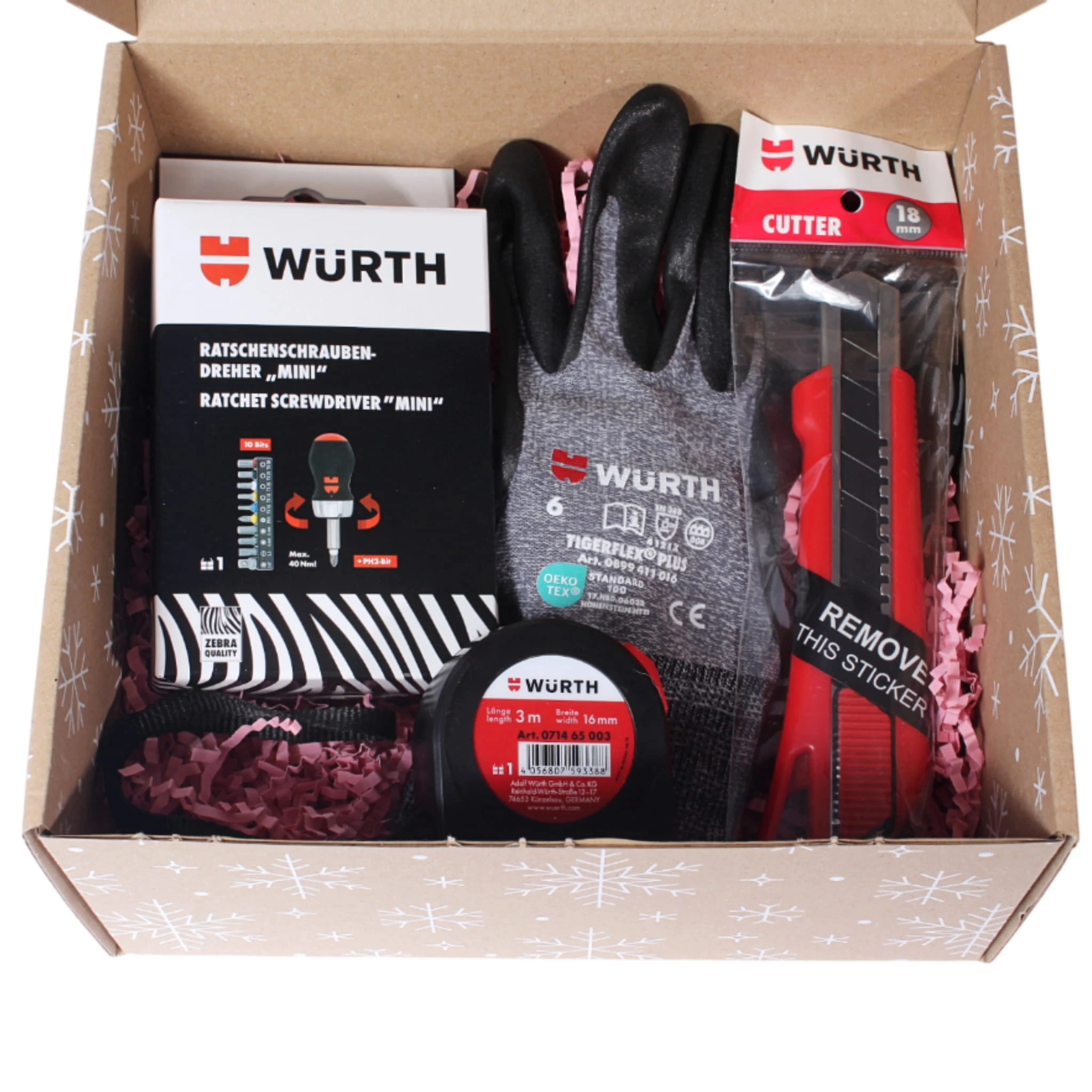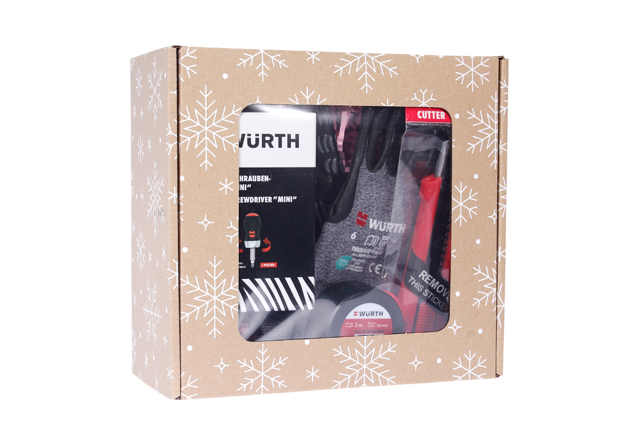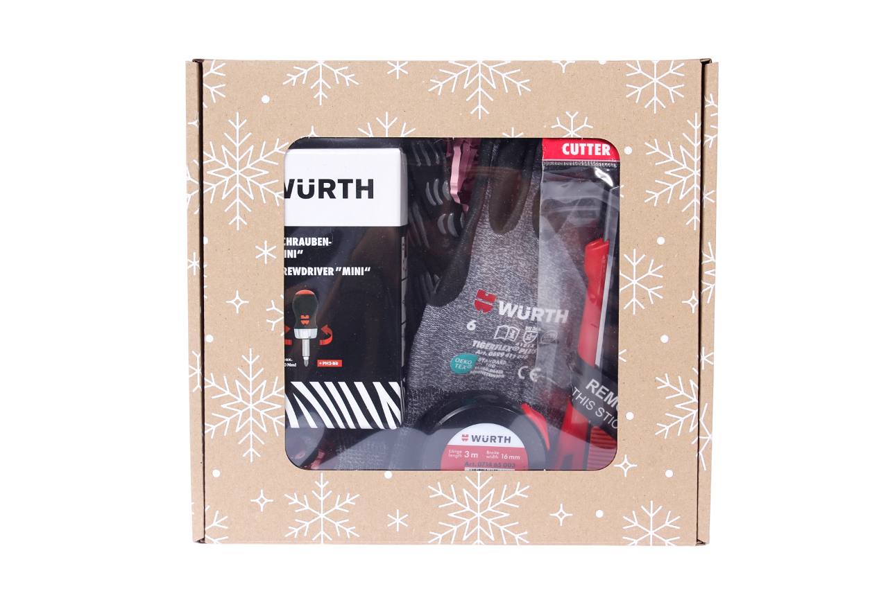 Zestaw prezentowy WURTH 4el. POD CHOINKĘ: wkrętak, miarka, nóż, rękawice