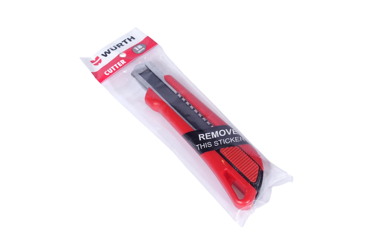 4. Nóż tapicerski WÜRTH 18 mm z automatyczną blokadą: profesjonalny nóż idealny do prac tapicerskich, budowlanych i codziennego majsterkowania.