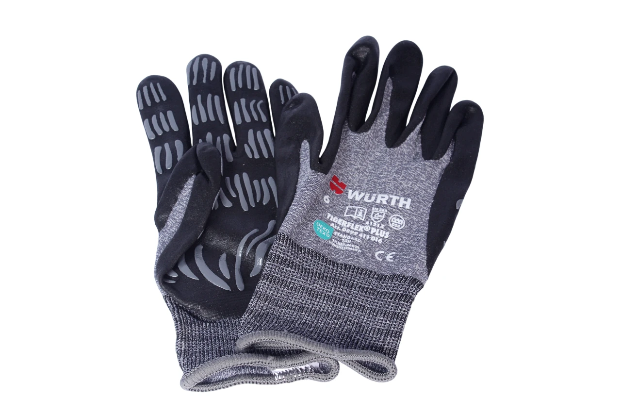 3. Rękawice robocze WÜRTH Tigerflex Plus: wysokiej jakości rękawice o doskonałej przyczepności i precyzji, idealne do pracy z narzędziami.